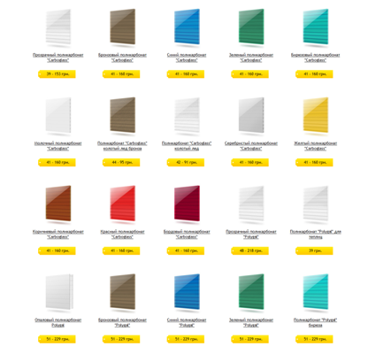 По характеристикам ударной прочности поликарбонат в 200 раз прочнее стекла и в 8 раз прочнее акрила (оргстекла). При ударе поликарбонат, в отличии от стекла и оргстекла, не даёт осколков и трещин, что позволяет использовать его в тех объектах, которые требуют безопасного остекления. Монолитный поликарбонат в 2 раза легче стекла аналогичной толщины. В сравнении со стеклом сотовый поликарбонат обладает меньшим коэффициентом теплопередачи. В отличие от оргстекла поликарбонат принадлежит к классу слабогорючих материалов, не поддерживающих горение. К преимуществам поликарбоната можно отнести и высокую светопропускную способность в сочетании с наличием специфического слоя защиты, который отсекает жёсткое ультрафиолетовое излучение. Смотрите цены и характеристики в каталоге. Более 50 видов поликарбоната!